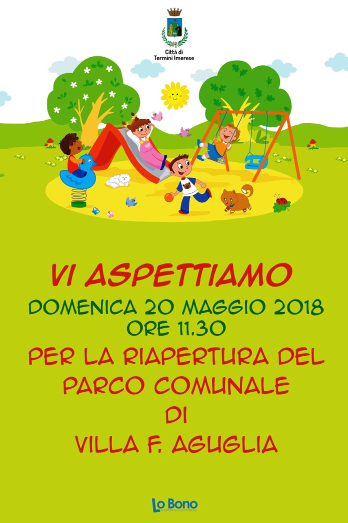 Domenica 20 maggio p.v., alle ore 11,30, avrà luogo la cerimonia di riapertura della “Villa Aguglia”, da anni in stato d’abbandono. La manifestazione sarà preceduta, alle ore 10, da una conferenza stampa, in programma nella sala La Barbera della sede storica del comune di Termini Imerese, dove saranno resi noti tutti i dettagli delle opere di riqualificazione e ringraziati tutti coloro che hanno contribuito, insieme all’amministrazione comunale, a realizzare questo importante traguardo.