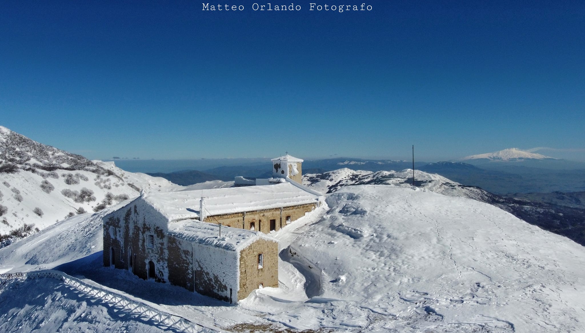 Questa bella fotografia è stata scattata da Matteo Orlando,giovane fotografo e amante della montagna:lo scatto è stato realizzato al Santuario della Madonna dell’Alto,( a quota 1819 m.s.l.m.)in questo periodo ben innevato e per questo più suggestivo.