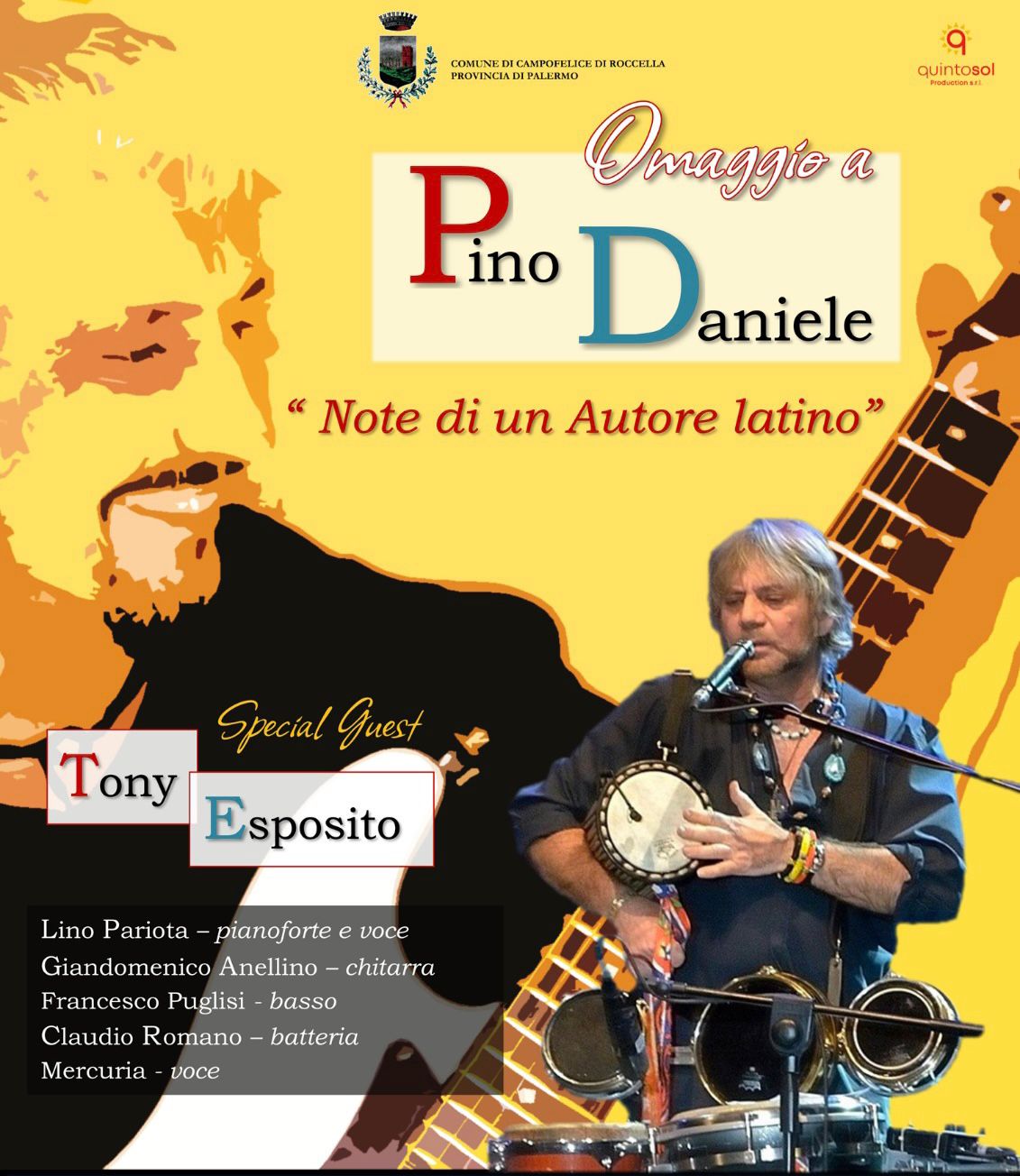 A Campofelice di Roccella si terrà domenica 10 settembre l’omaggio a Pino Daniele con Tony Esposito, in concerto alla ore 22 nella cornice di Piazza Garibaldi.