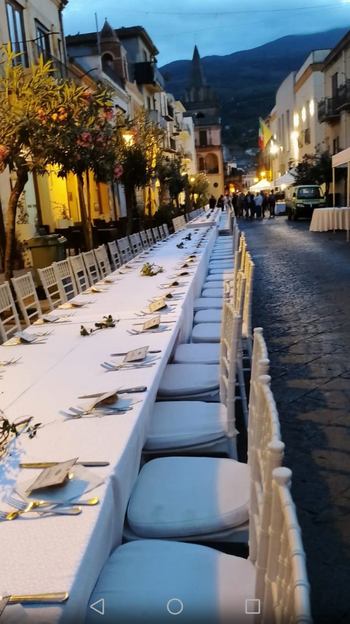 Tali iniziative danno grande risonanza sociale non solo per la cittadina di Castelbuono, ma anche per tutto il territorio delle Madonie. Creano stimolo per l’aggregazione sociale, per la solidarietà ma anche per la convivenza civile. Grande capacità di creare momenti di coesione tra i tanti ristoratori che hanno preparato la cena, ma anche ai tanti intervenuti per la preparazione e sistemazione dei luoghi e per la posa dei tavoli. Il menù è stato di grande rispetto, con un gran buffet di specialità siciliane, i ravioli di sfoglia farcita con funghi delle Madonie e crema di manna. Il maialino nero sempre delle Madonie. Ancora è stato proposto il buffet di dolci “La testa di turco”, cannoli, sfincie con