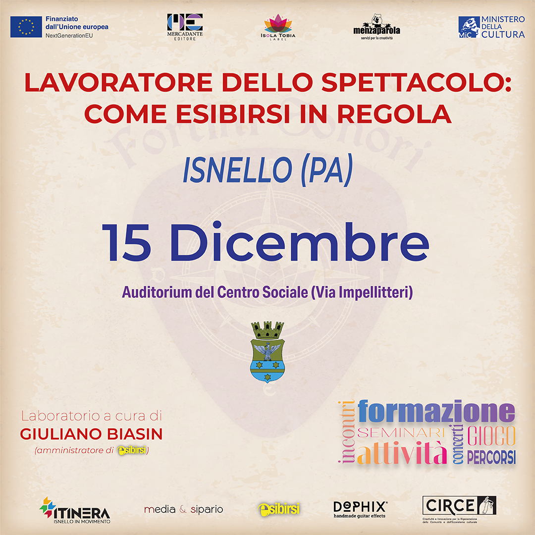 ”Lavoratore dello spettacolo: come esibirsi in regola” organizzato da Mercadante editore per Fortini Sonori ad Isnello