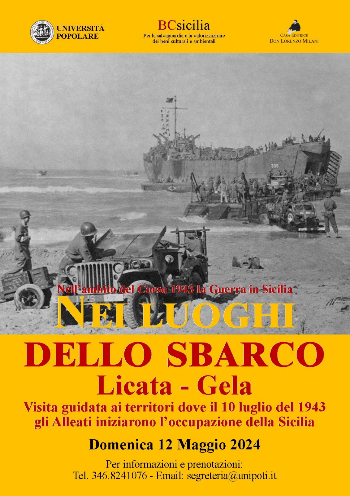 Università Popolare – BCsicilia – Casa Editrice Don Lorenzo Milani – Nell’ambito del Corso 1943 la Guerra in Sicilia, Domenica 12 Maggio 2024