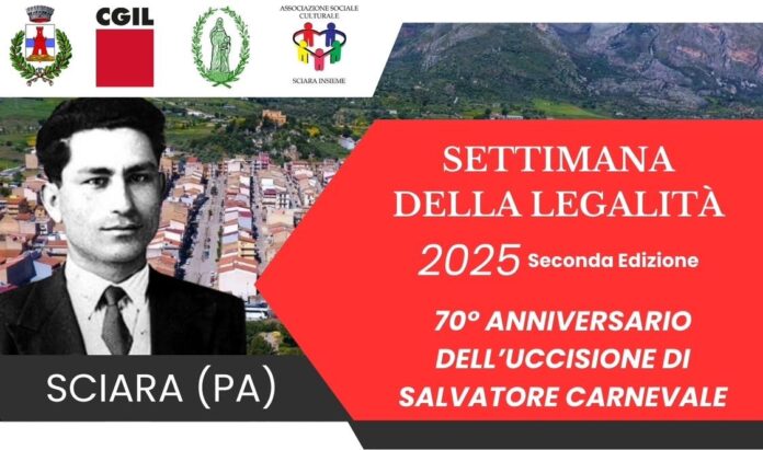 A Sciara venerdì 16 maggio la Cgil Palermo celebra il 70° anniversario della morte di Salvatore Carnevale. La commemorazione del segretario della Camera del Lavoro di Sciara, ucciso dalla mafia il 16 maggio 1955, rientra anche quest’anno tra le iniziative della seconda edizione della “Settimana della legalità” promossa dal comune di Sciara.