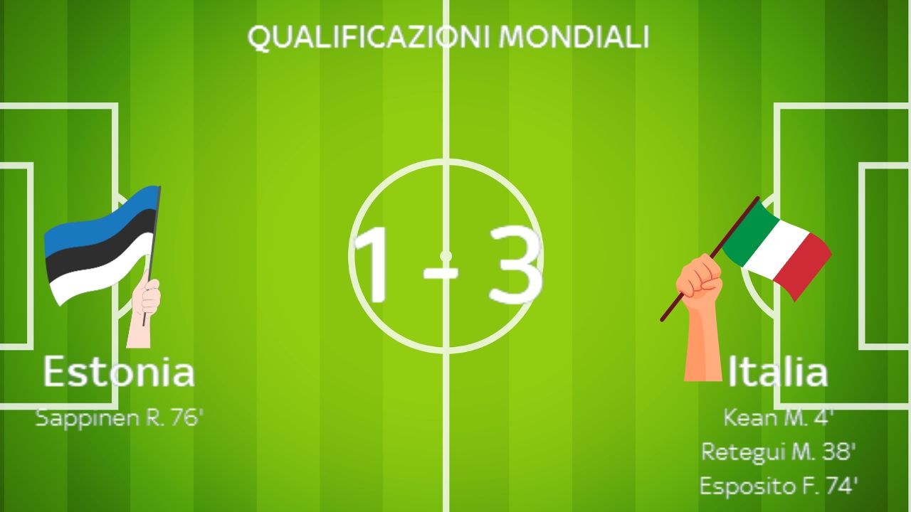 L’Italia vince a Tallinn 3-1 e si rilancia nella corsa Mondiale. Gattuso ritrova il sorriso, Esposito segna il suo primo gol azzurro.
